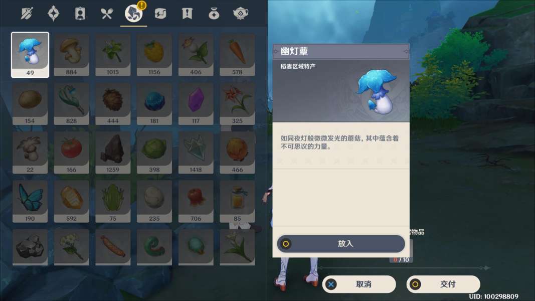 来到鹤观七天神像附近接取任务对话可知罗尔德需要幽灯蕈「xùn」