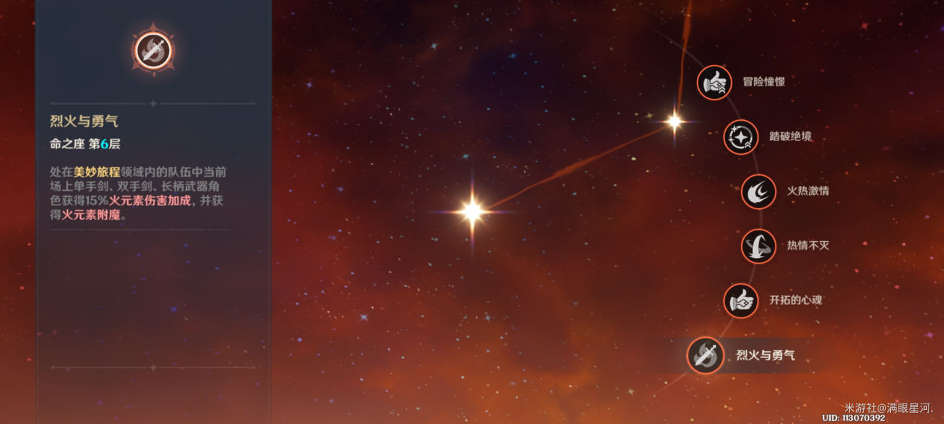 这个时候我们的火元素伤害加成在理想状态下就是火杯子+胡桃被动+香菱六命脱手大招被动+六命班尼特大招被动=46.6%+33%+15%+15%=109.6%当然如果你有砂糖六命的话伤害再增加20%因为考虑到砂糖满命难抽所以这里就不加计算