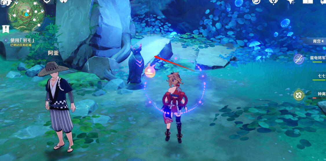 对话之后会出现羽毛,触碰后羽毛飞起,就可以去下一个地方了。