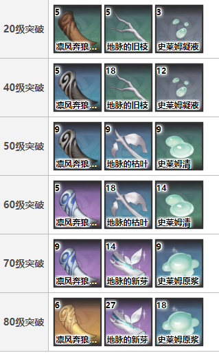 需要突破素材:凛风奔狼的始龀、地脉的旧枝、史莱姆疑液