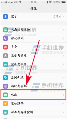 1)打开手机【设置】,进入设置菜单后点击【电池】选项。(如下图)