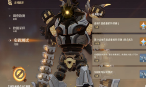14.这个跟上面略有不同,就是你先别充能三个钉子,这样它防御不会太高,然后在它打第一个钉子的时候,就能把它打到空血,接下来就是一边清小怪一边输出。不过没太大把握或者伤害不够的话,可以在补充能的时候,空一个高耐久钉子出来,如果没有小怪去打就别管,有就清完小怪再把重机拉到旁边慢慢磨,这样可以保证任务完成。