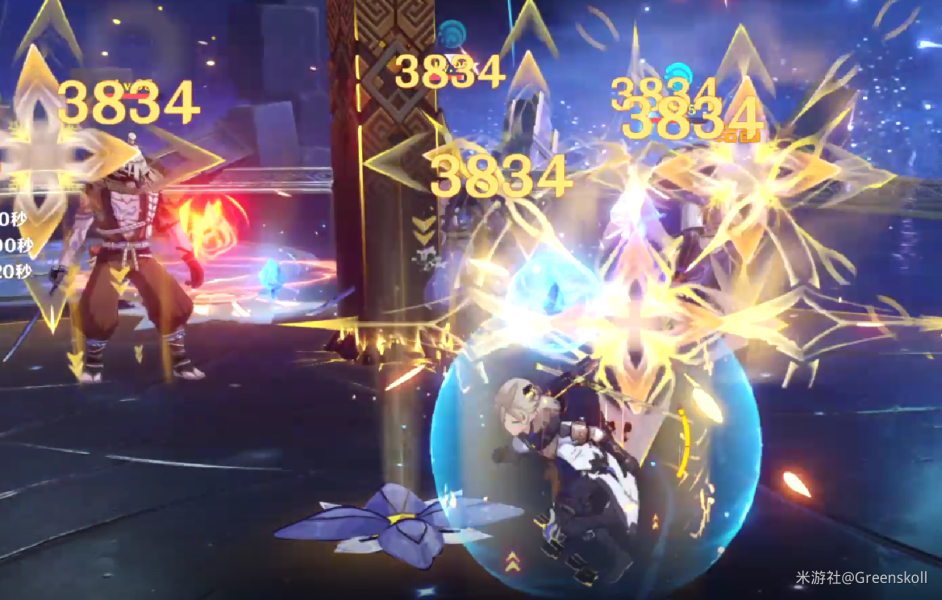 鉴于钟离的护盾覆盖率有时达不到100%,额外测试未处于玉璋护盾庇护下刹那之花的伤害——约17k