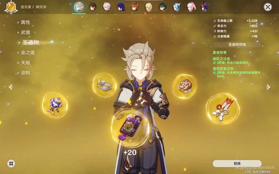 圣遗物水平较为平均,不捡垃圾也不阳寿(在贴尾给出)