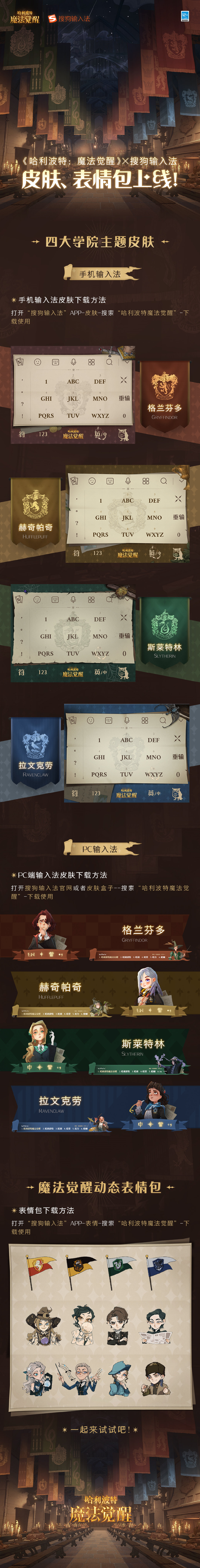 打开“ 搜狗输入法”APP-皮肤搜索“哈利波特魔法觉醒”-下载使用