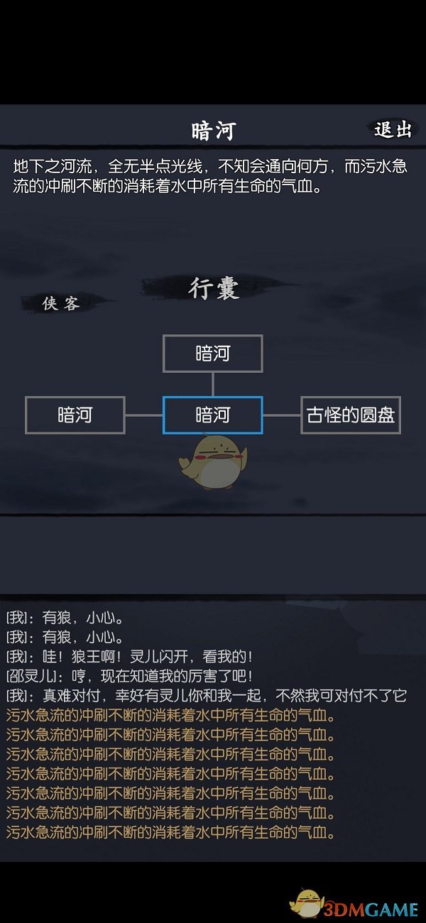 二、然后进暗河(胆识要求85好像),走到右下角有个圆盘,臂力100以上可以推开圆盘进去。