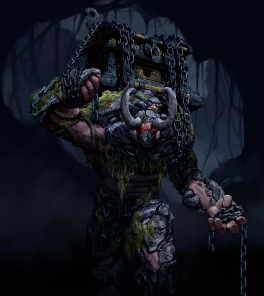 它平时会将自己的身躯埋在石头堆或土地里来融入周围的环境中,当术士之外的其他人试图打开宝箱时,他就会从土里钻出袭击打开宝箱的人。