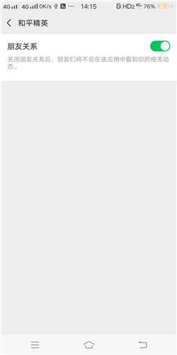 4、点击《和平精英》,将朋友关系后面的开关关闭即可。