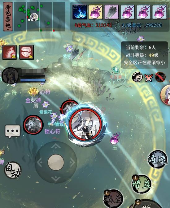 2、地图中还散布了不同的可增强气血和真元的丹药,拾取后可提升自身战斗能力。(可以理解为吃鸡玩法中的头盔、防弹衣)