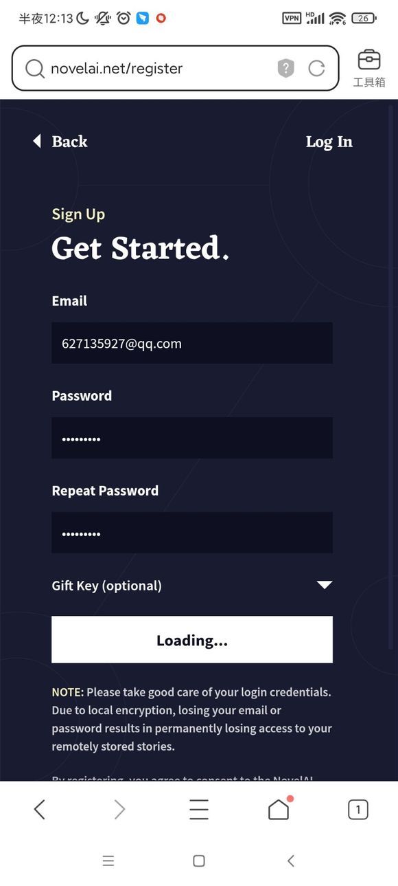 5、值得注意的是,如果在注册过程中页面出现loading……的提示,需要将其切换至日服线路才可以完成注册操作。