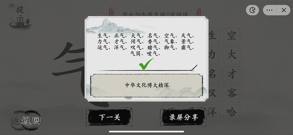 玩梗大师写出20个带气的2字词语通关方法一览