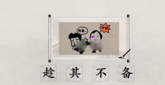 3、看图猜成语三答案:趁其不备(左边的人还没有准备号,右边的人就开始了,趁其不备)