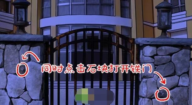 1、汉字派对【深夜打工人】这一关需要在公司加班,首先需要同时点击大门两边的黑色石块,打开铁门进去