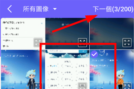 2、接下来我们需要在手机本地相册中选择想要制作为GIF动态图的素材,选中所需的图片,然后点击右上角的下一个按钮即可进入到编辑界面。
