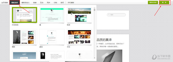 4、更改好主页信息后打开模板选择菜单,这里乐乎已经设计好了很多的模板,点击模板就能在主页上看到预览效果,选好后点击保存按钮就可以了;