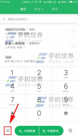 1)打开手机【电话】应用,来到电话界面后再点击左下角的【三】进入到设置界面。(如下图)