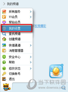 1、首先下载安装YY语音最新版本,再注册登陆之后,点击左下角的菜单界面-进入"我的设置"界面。