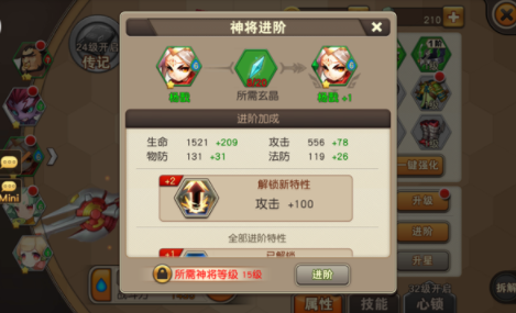 进阶神将可解锁新技能,大幅提升自身属性并额外获得新专属属性,简直物超所值,可以吊打小朋友了