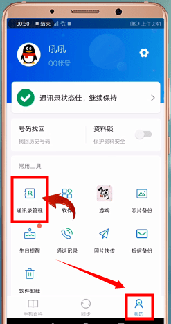 4、除此之外我们还可以【我的】-【通讯录管理】