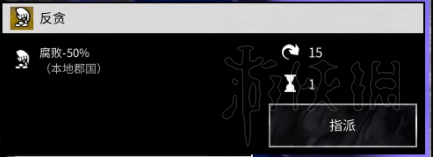 腐败程度决定你被系统扣掉的收益,也就是你很可能在白干。游戏里面最快去除腐败的方式是差事,但是能做的差事很有限,所以一般要挑选给大的商业郡城做。